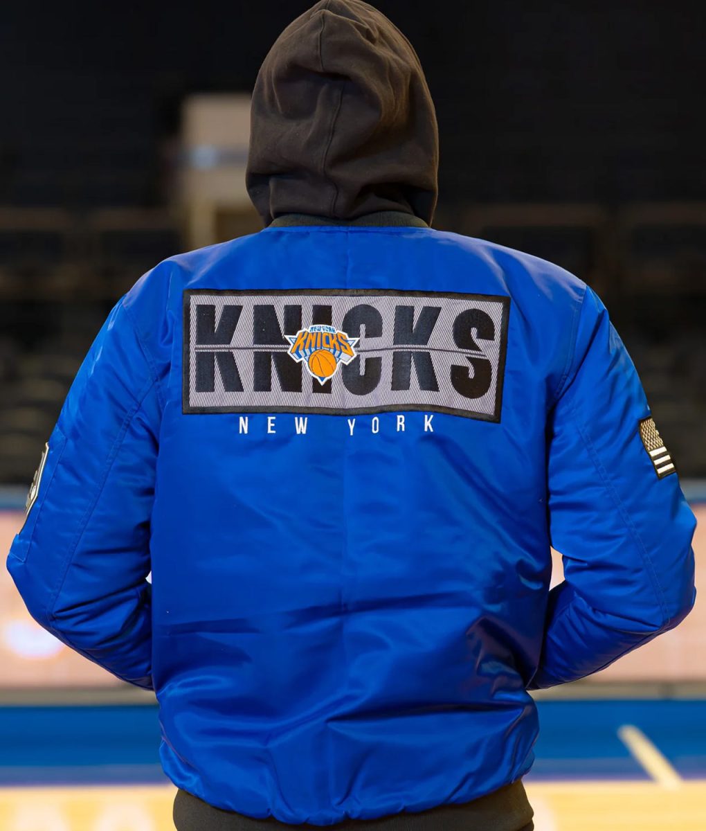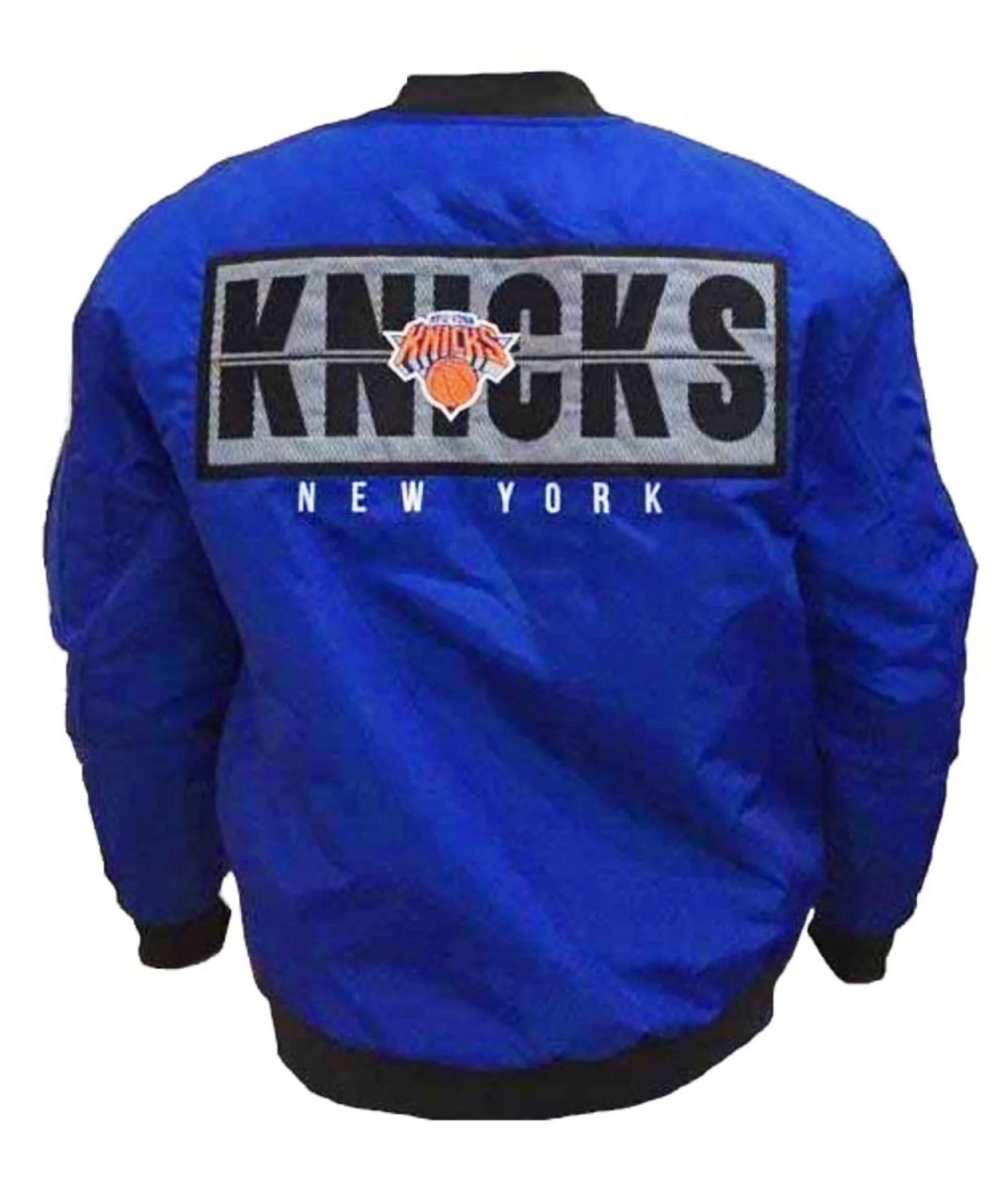 - Logo: New York Knicks logo on the front, sleeve, and back