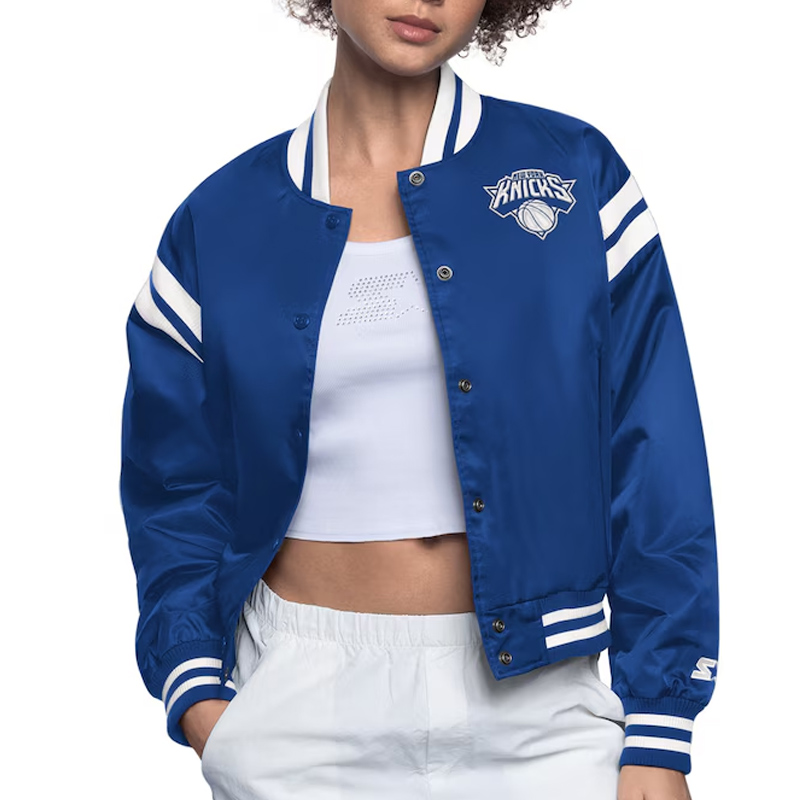 NY Knicks Blue/White Full Count Satin Jacket