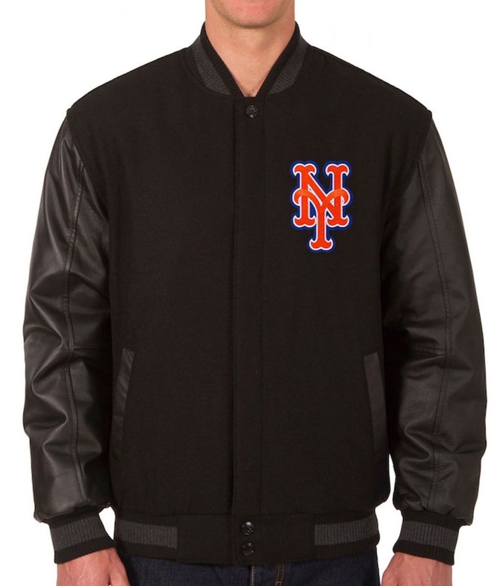 NY Mets Black Wool & Leather Jacket