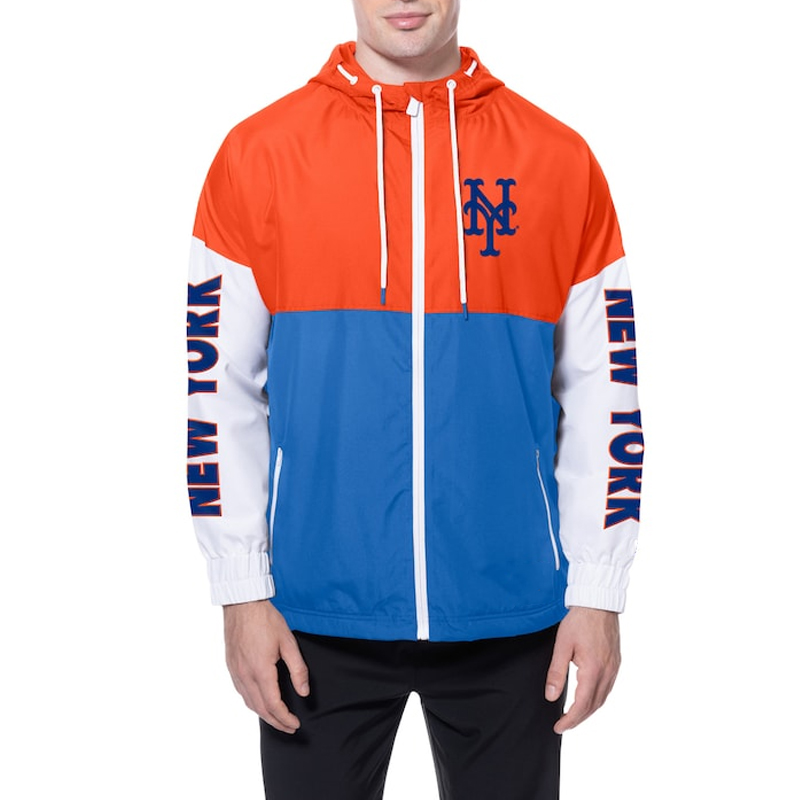 NY Mets Color Block Royal/Orange Hoodie Windbreaker