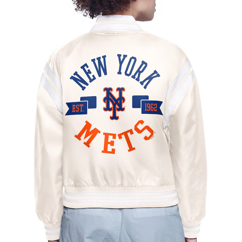 NY Mets Printed Logo Black Varsity Satin Jacket