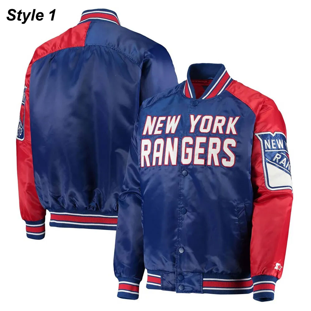 NY Rangers Color Block Wordmark Satin Jacket