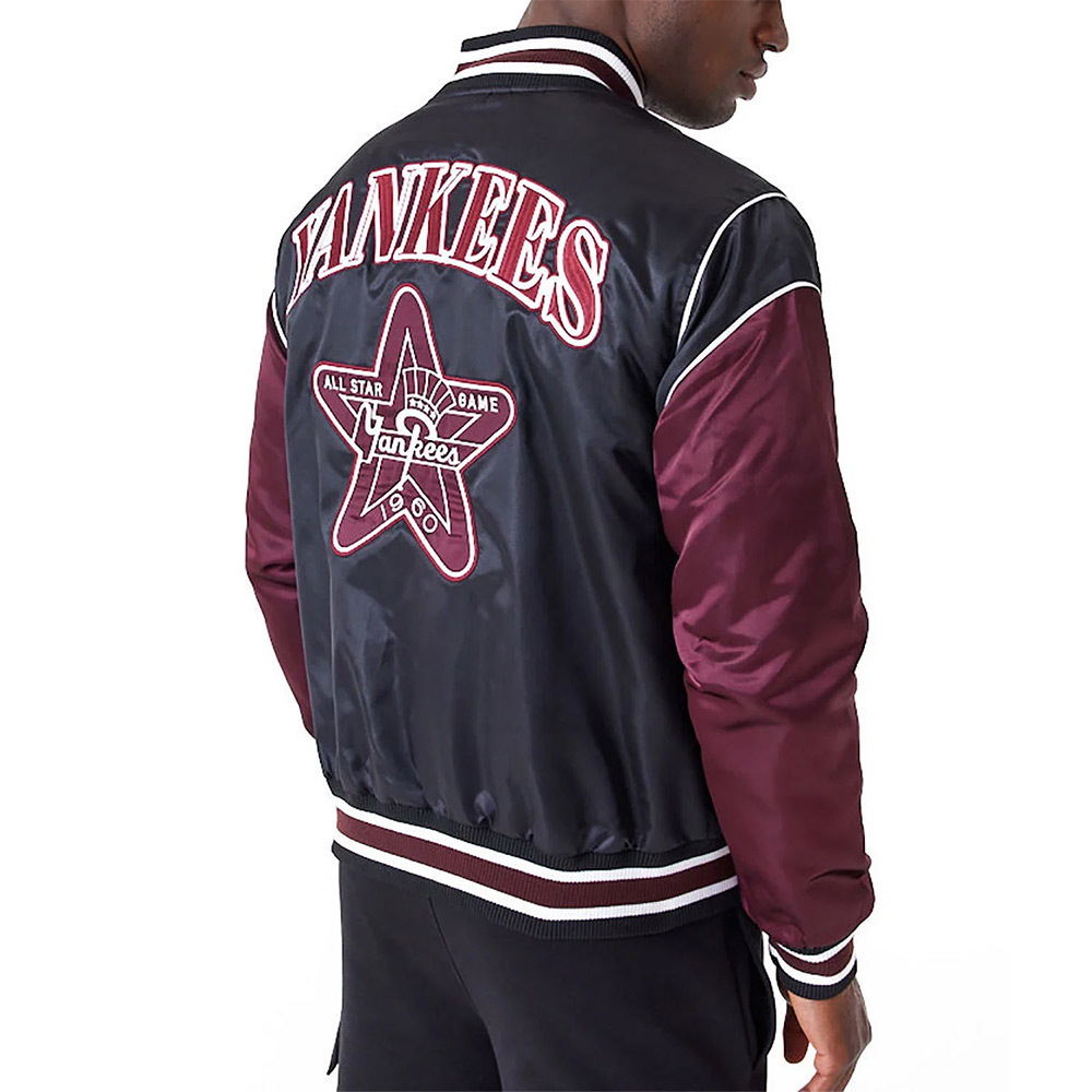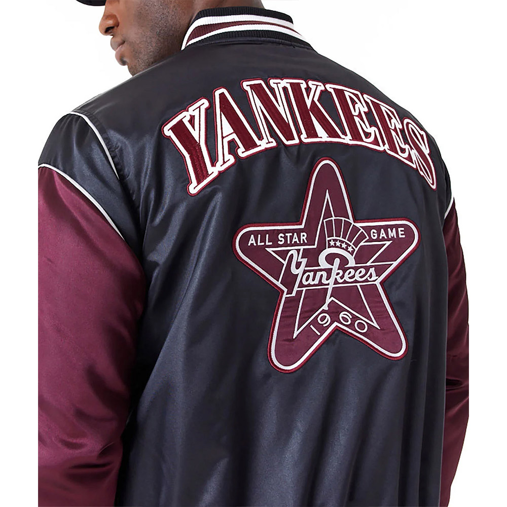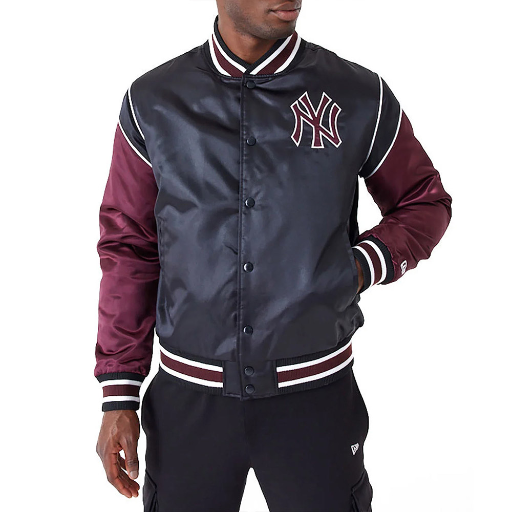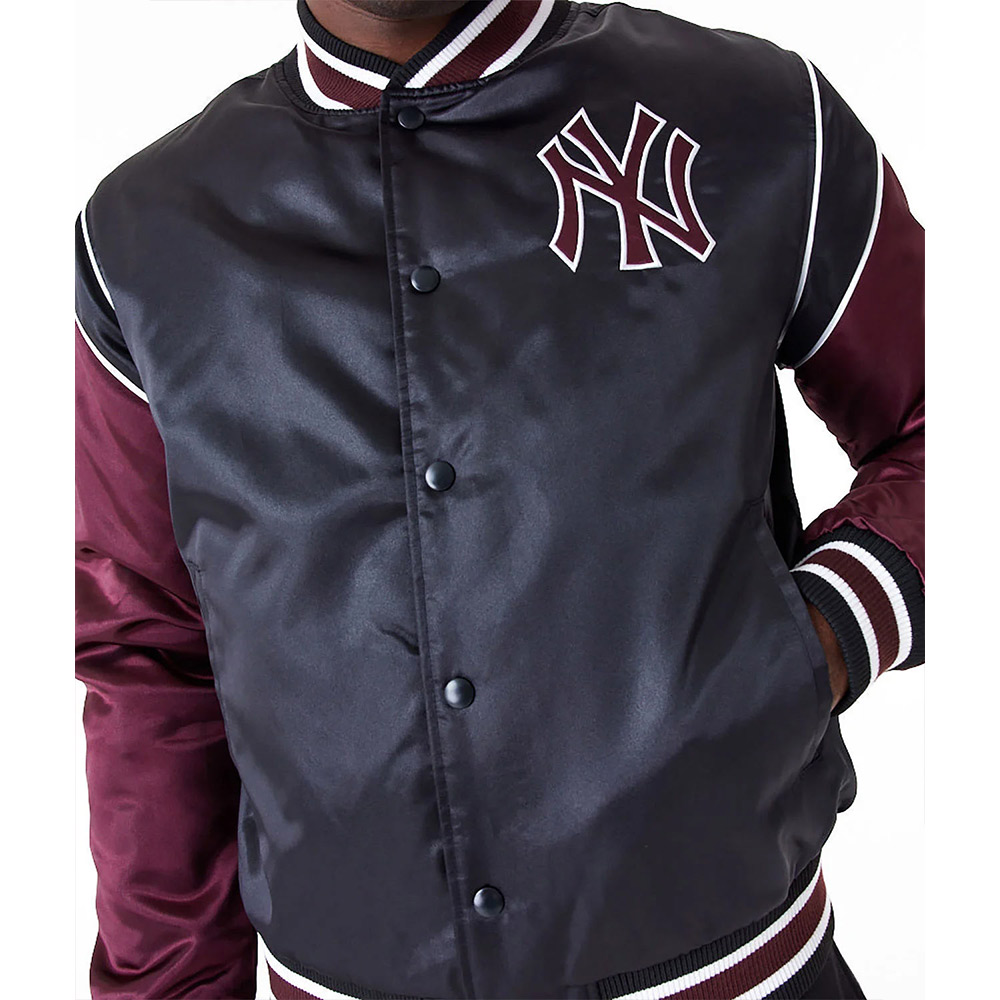 NY Yankees Black and Maroon Satin Jacket