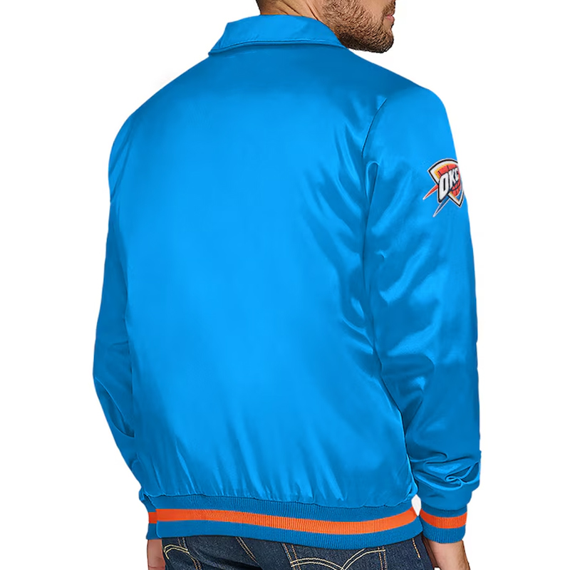 Oklahoma City Thunder Stitch Applique Blue Satin Jacket