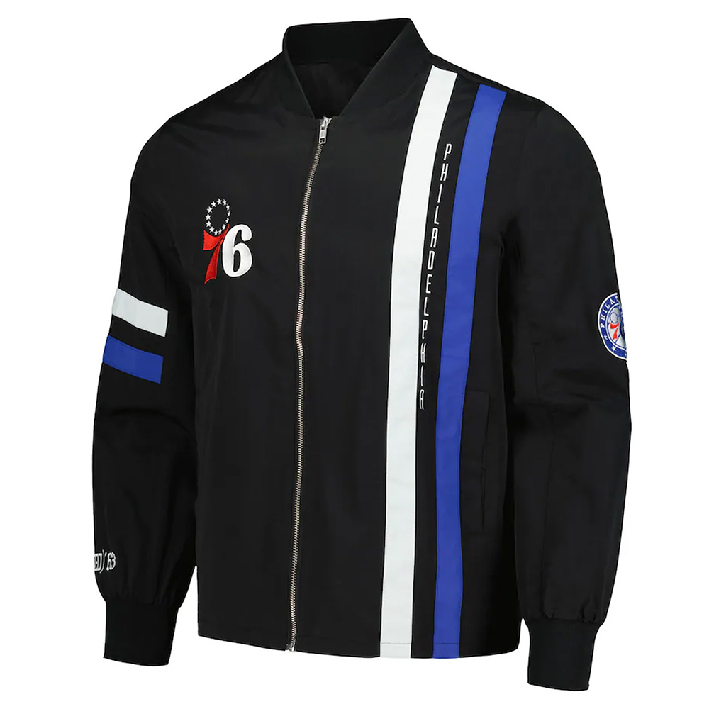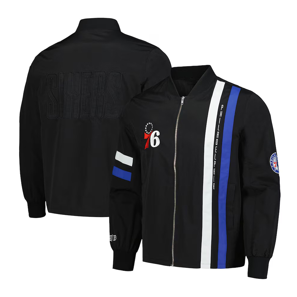 Philadelphia 76ers Black Stitch Applique Bomber Jacket