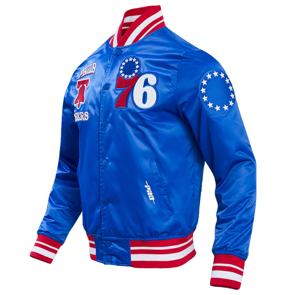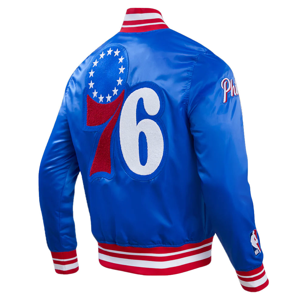 - Logo: Philadelphia 76ers logo on the chest, back, and sleeve