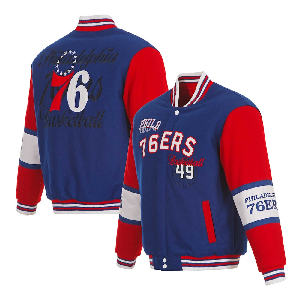 Philadelphia 76ers Royal and Red Varsity Wool Jacket