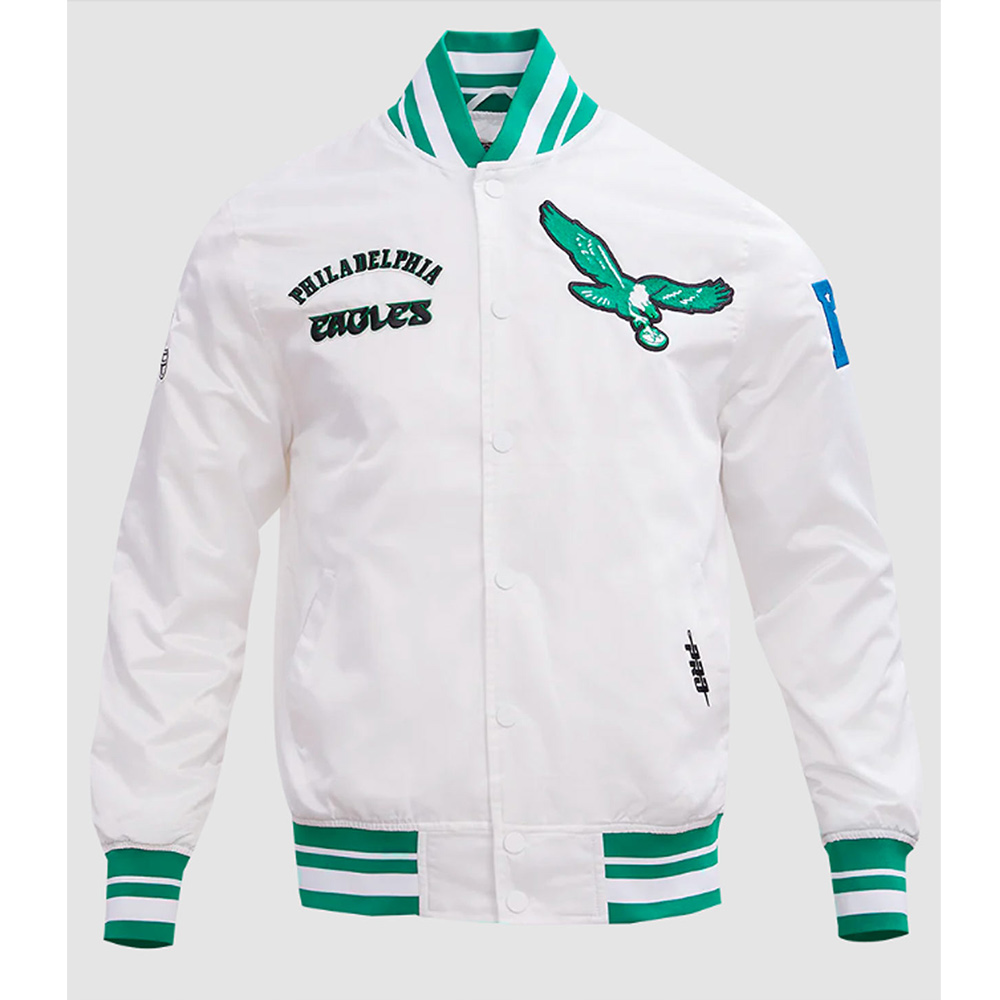Philadelphia Eagles Retro Classic White Rib Satin Jacket