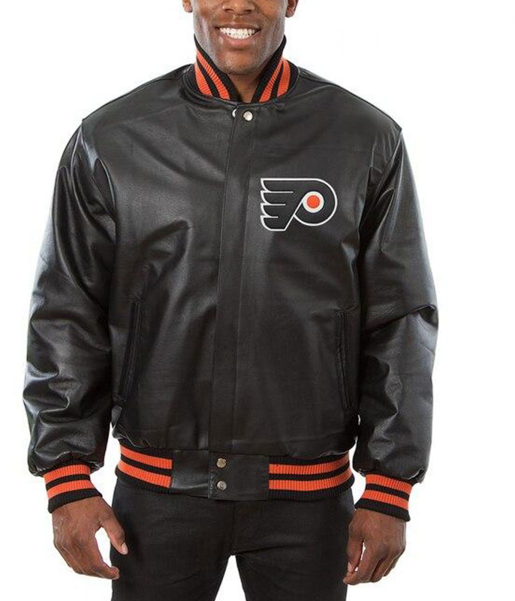 Philadelphia Flyers Black Leather Bomber Jacket