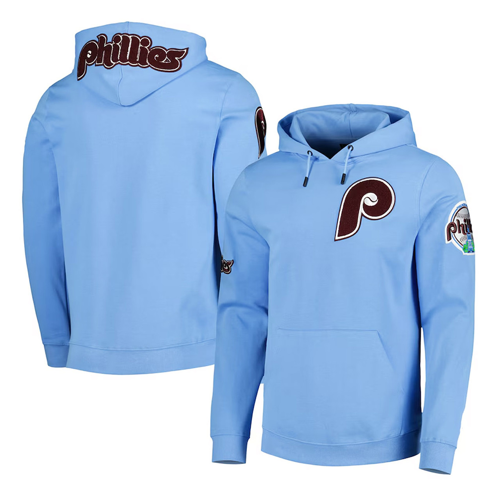 - Logo: Philadelphia Phillies logo on the front, sleeve, and hood
