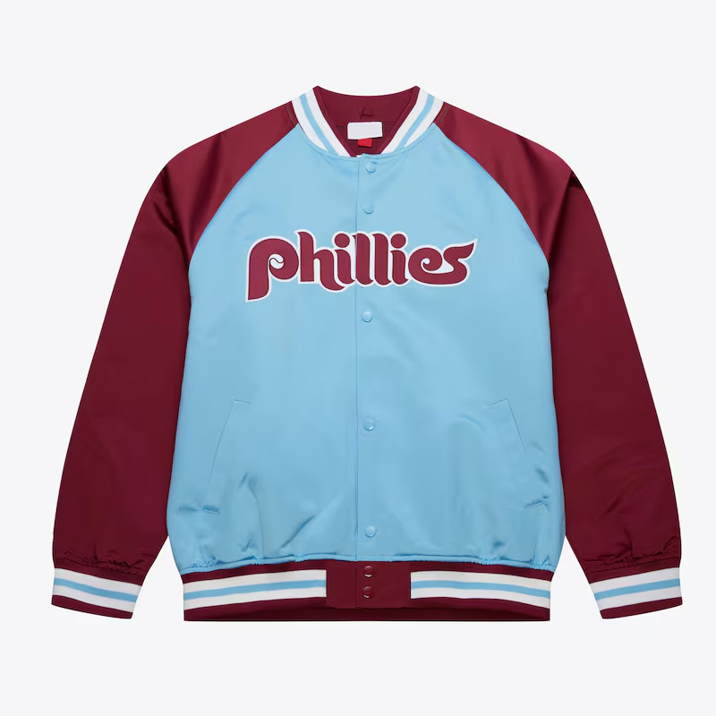 Philadelphia Phillies Vintage Logo Double Clutch Blue Satin Jacket
