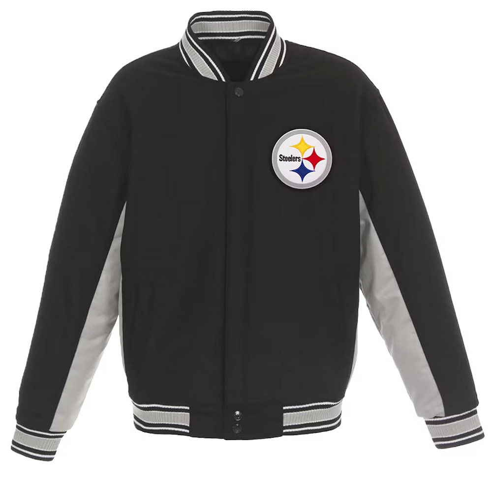 Pittsburgh Steelers Black and Gray Varsity Wool Jacket