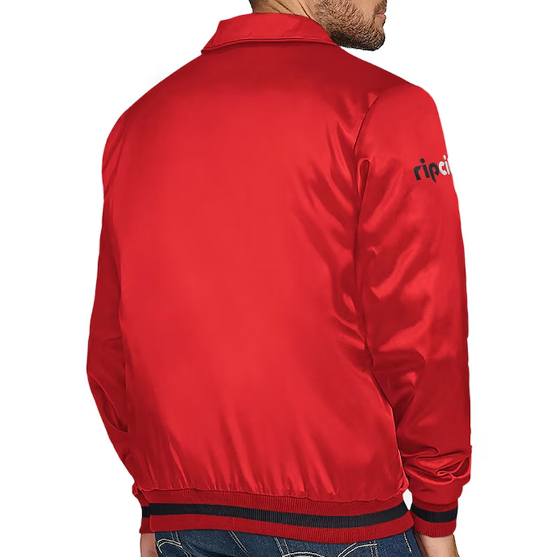 Portland Trail Blazers Stitch Applique Red Satin Jacket