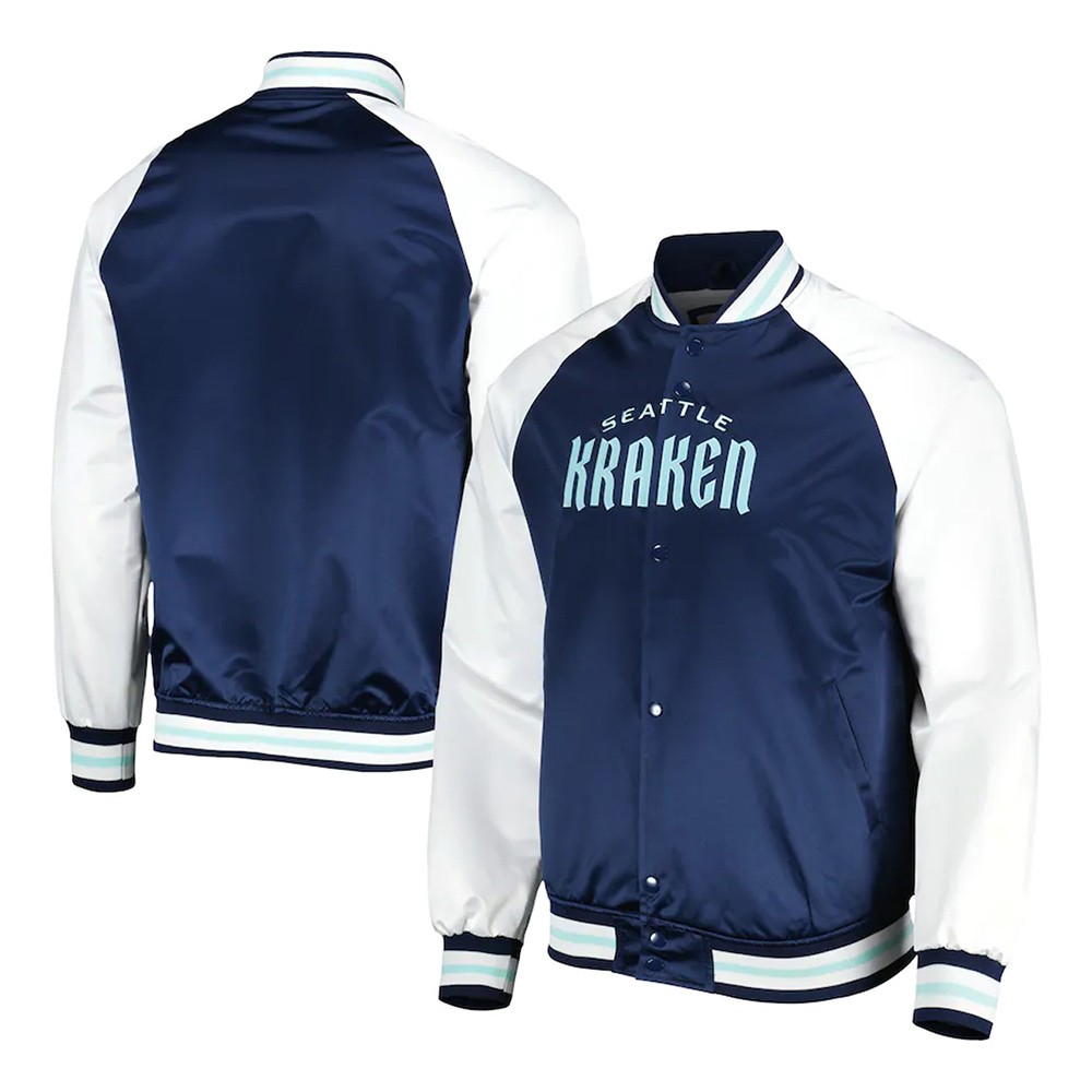 Primetime Seattle Kraken Blue/White Varsity Satin Jacket