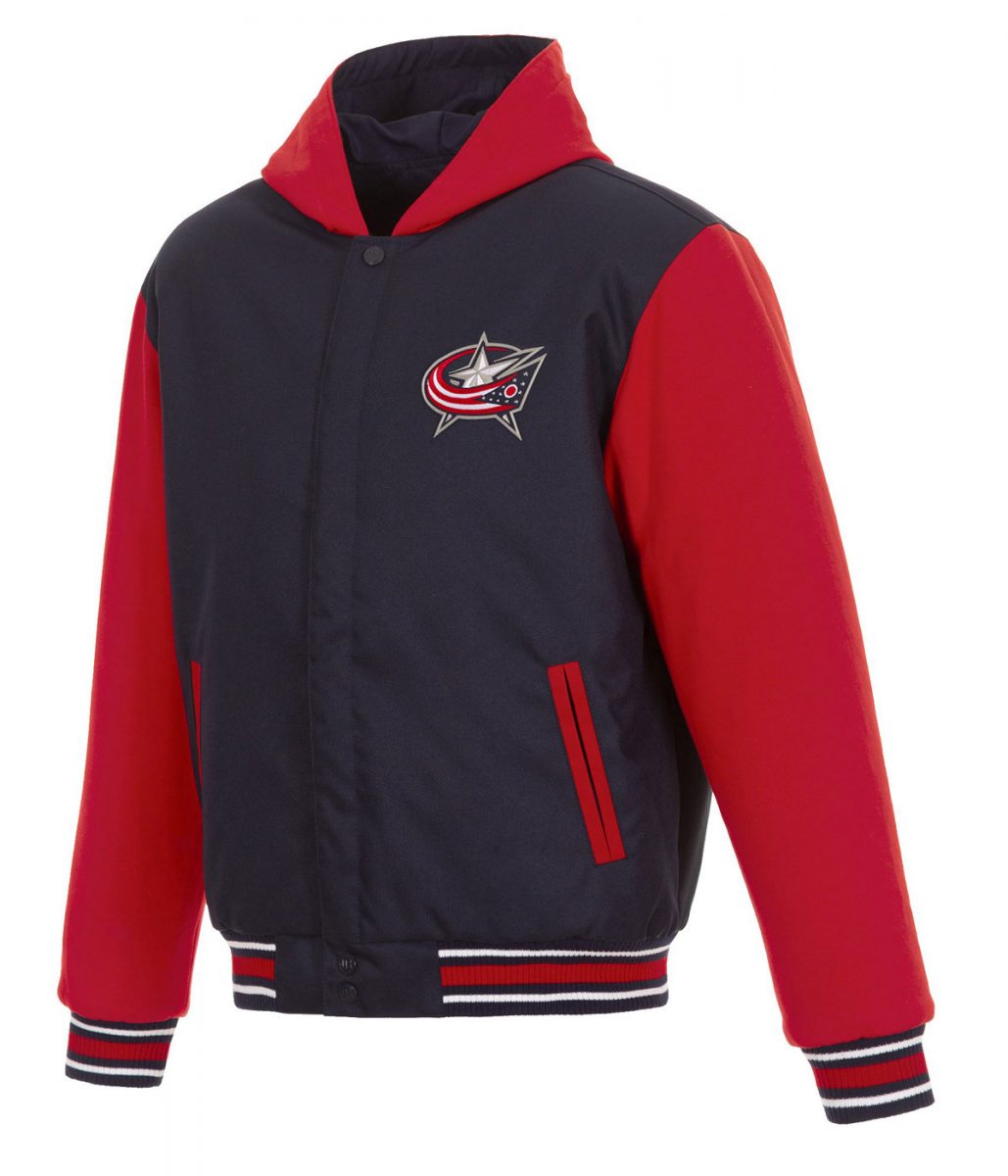Red and Blue Columbus Blue Jackets Hooded Wool Jacket
