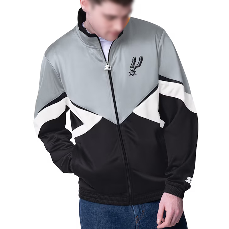 San Antonio Spurs Rush Applique Silver/Black Full-Zip Track Jacket