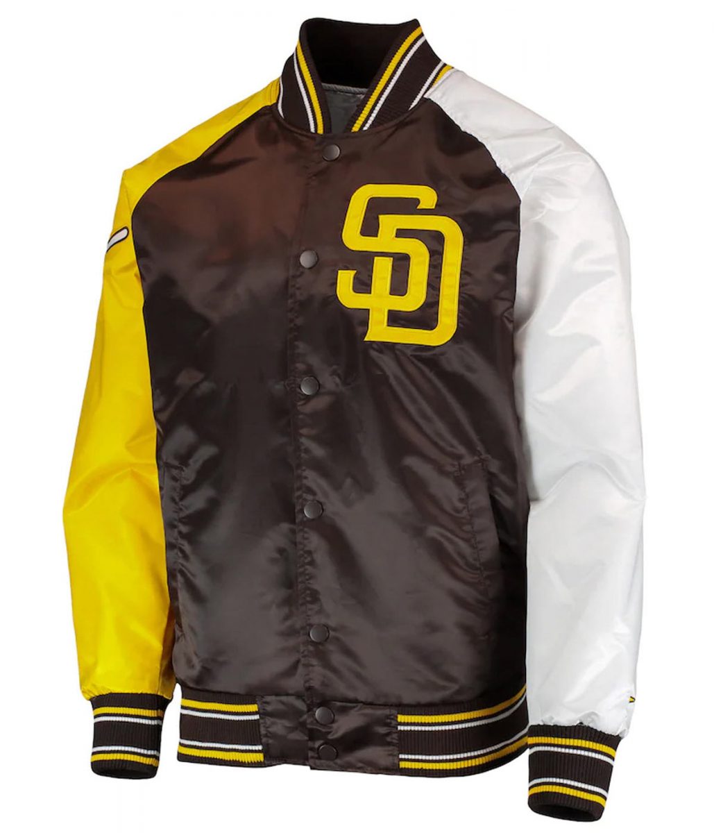 San Diego Padres Raglan Reliever Brown and Gold Satin Varsity Jacket