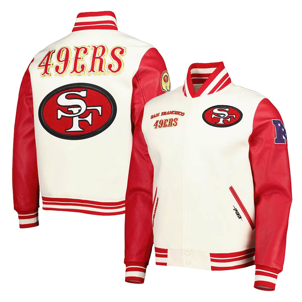 San Francisco 49ers Retro Classic Cream and Red Varsity Jacket