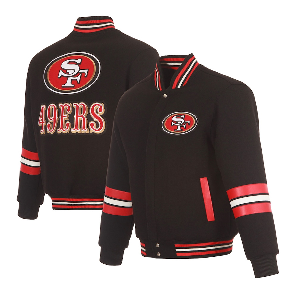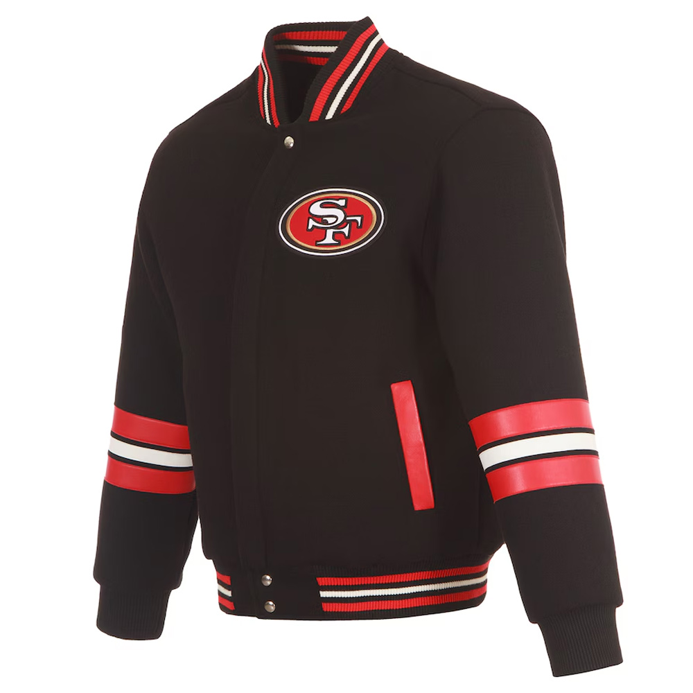San Francisco 49ers Striped Black Varsity Wool Jacket