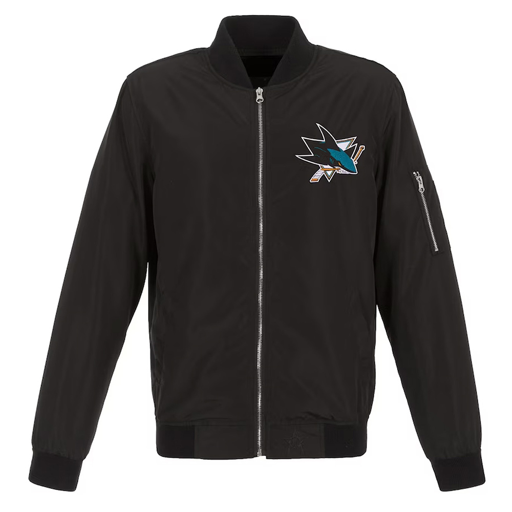 San Jose Sharks Black Lightweight Nylon Bomber Jacket