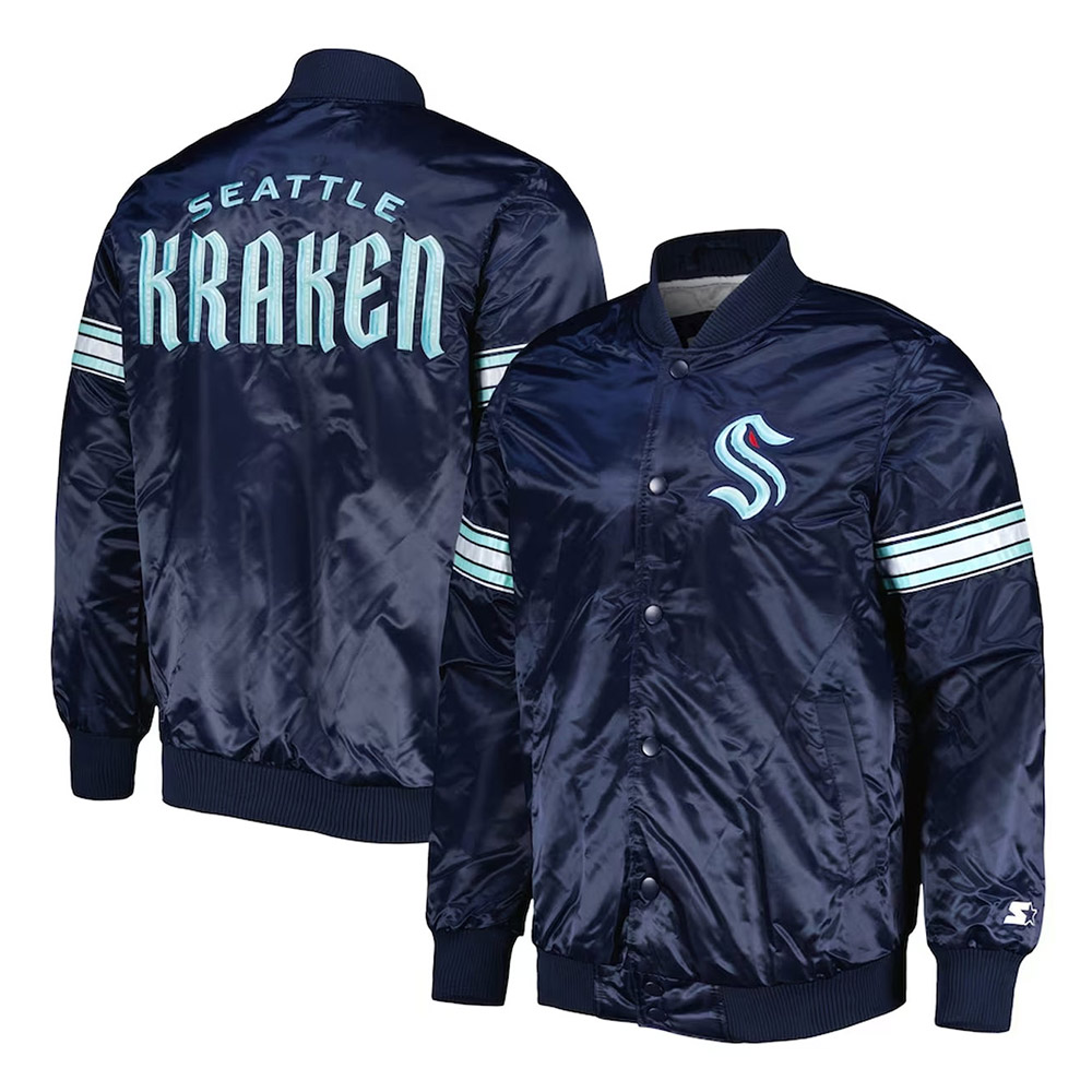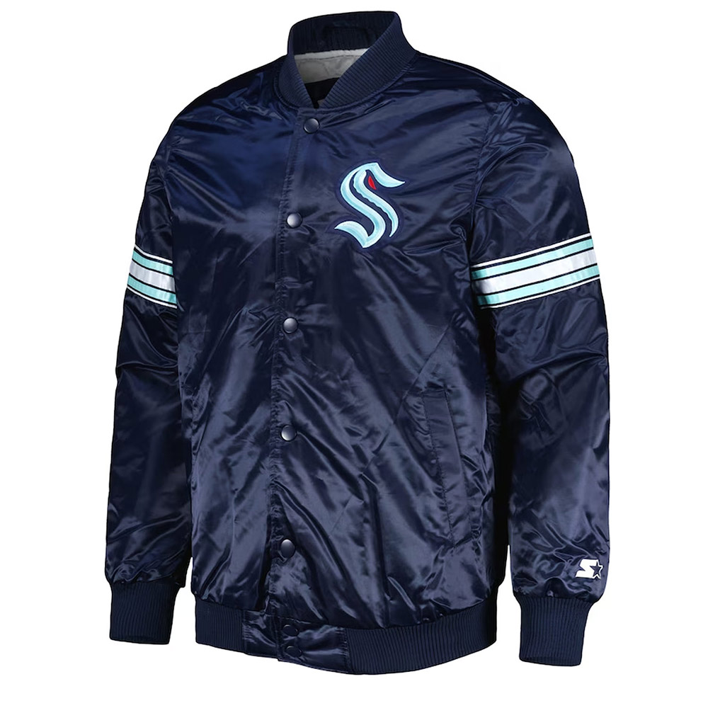 Seattle Kraken Pick & Roll Deep Sea Blue Satin Jacket