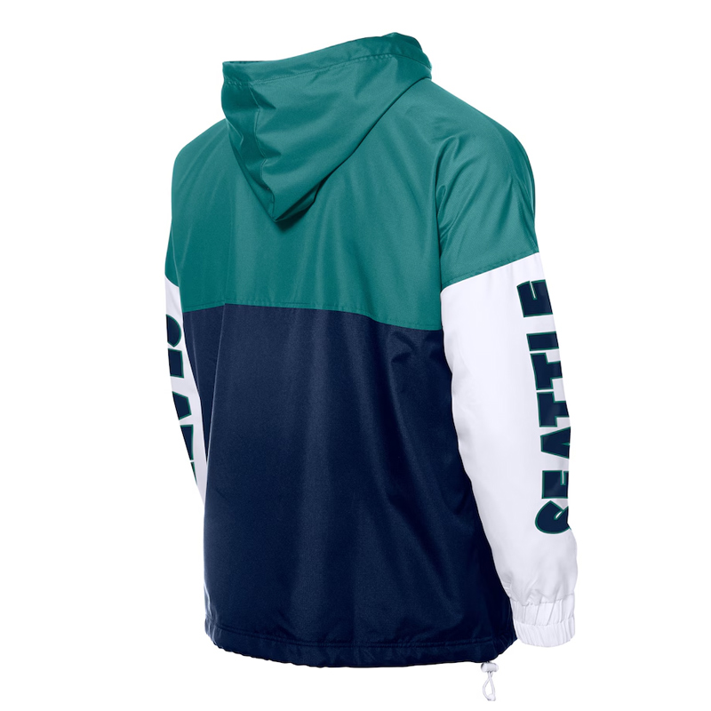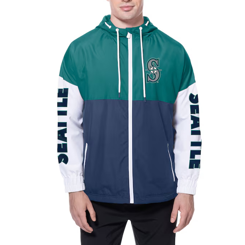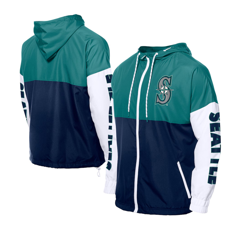 Seattle Mariners Color Block Navy/Aqua Hoodie Windbreaker