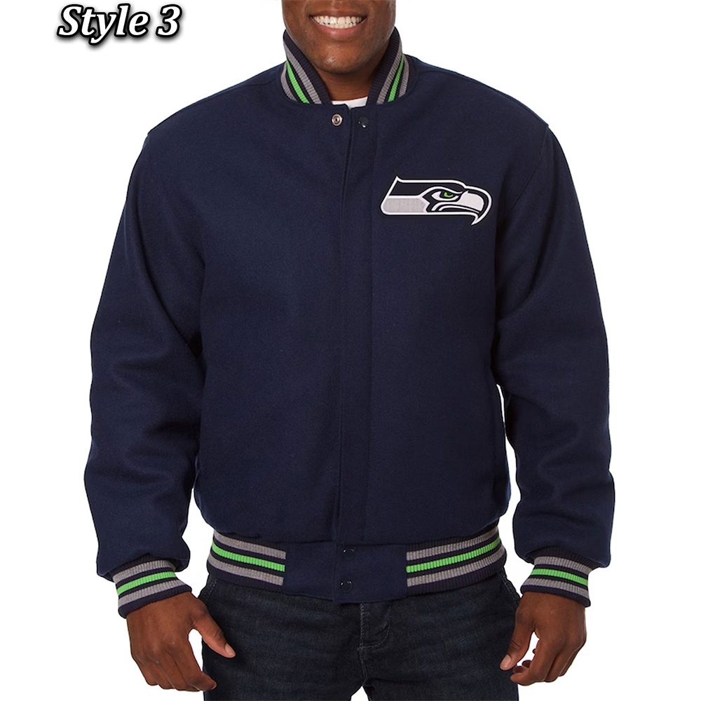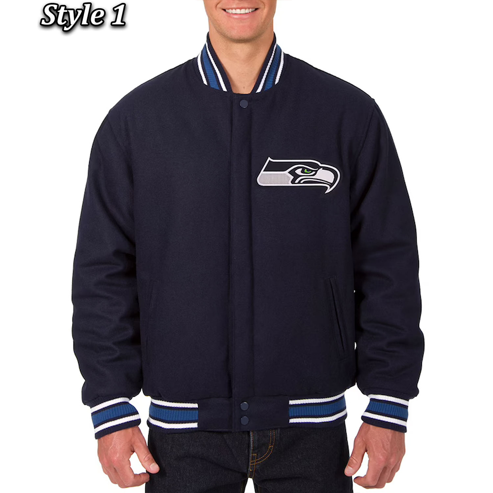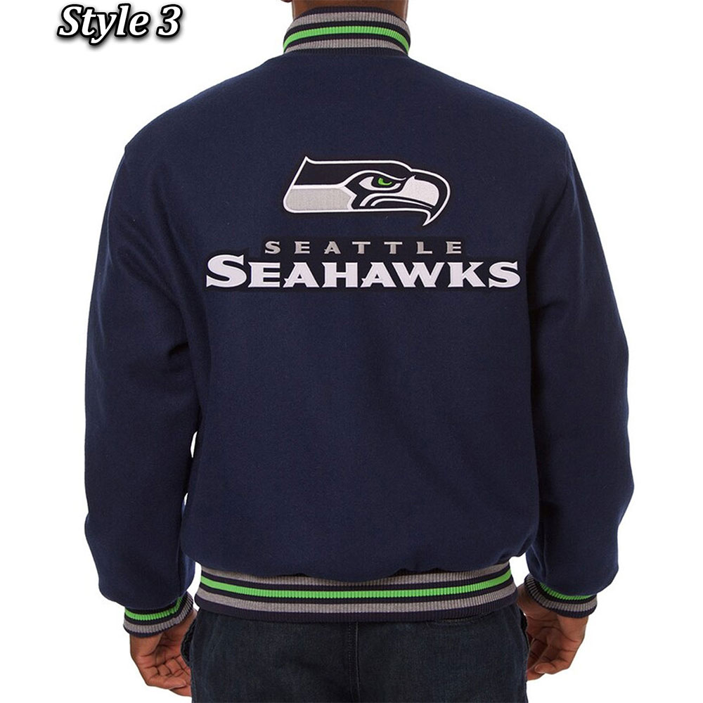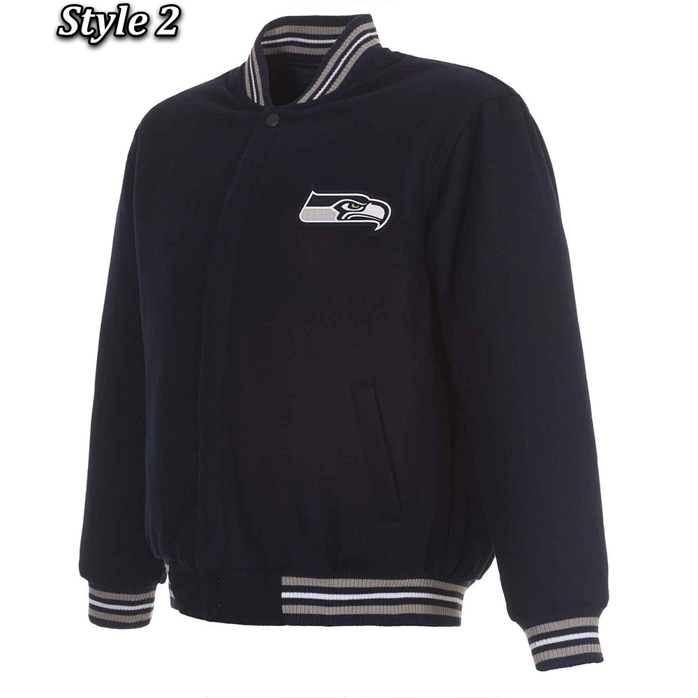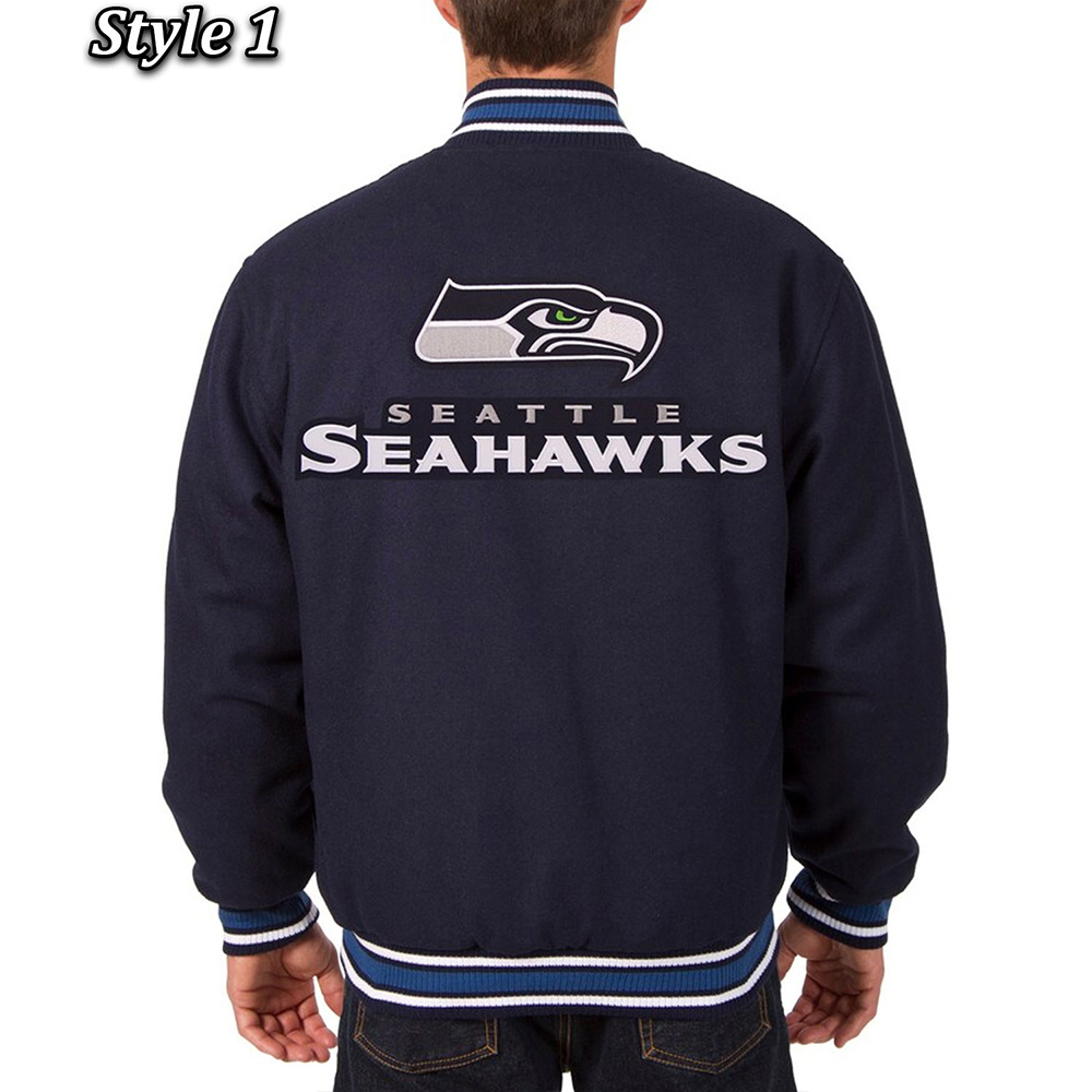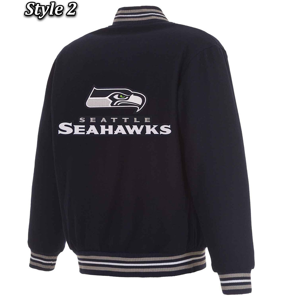 Seattle Seahawks Bomber Navy Blue Wool Jacket