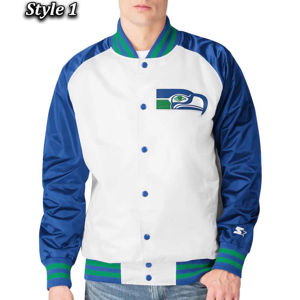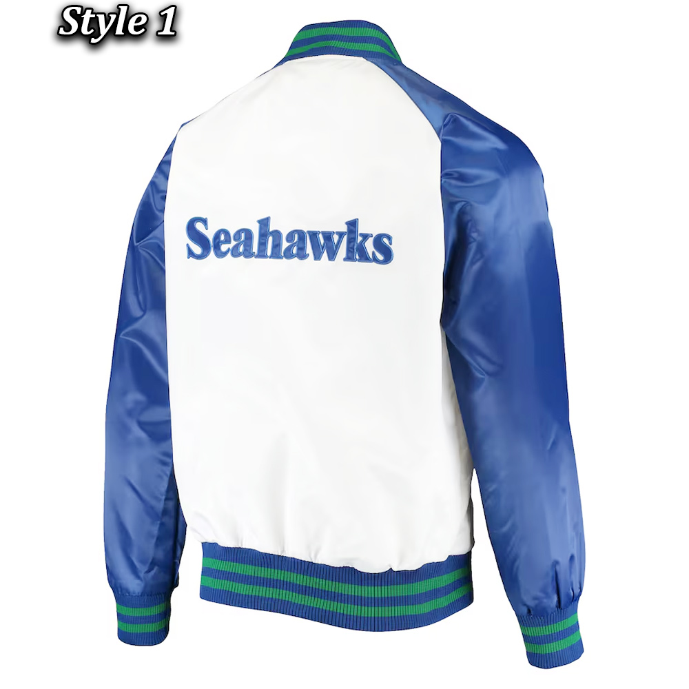 Seattle Seahawks Varsity Blue and White Satin Jacket