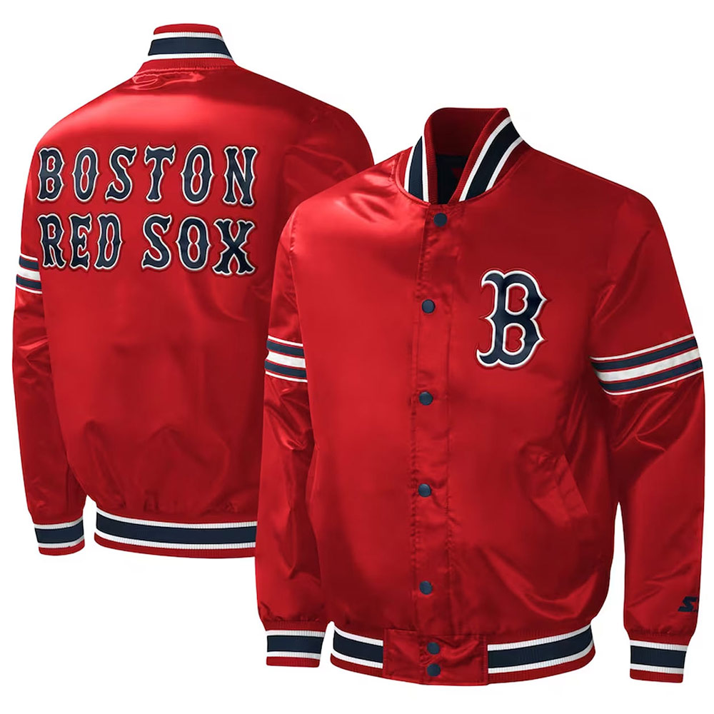 Starter Midfield Boston Red Sox Full-Snap Red Satin Varsity Jacket
