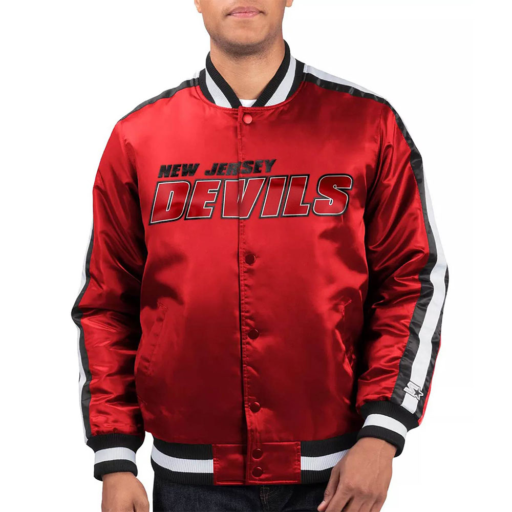 Starter Red New Jersey Devils O-Line Satin Full-Snap Jacket