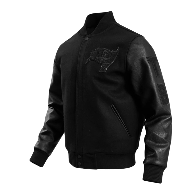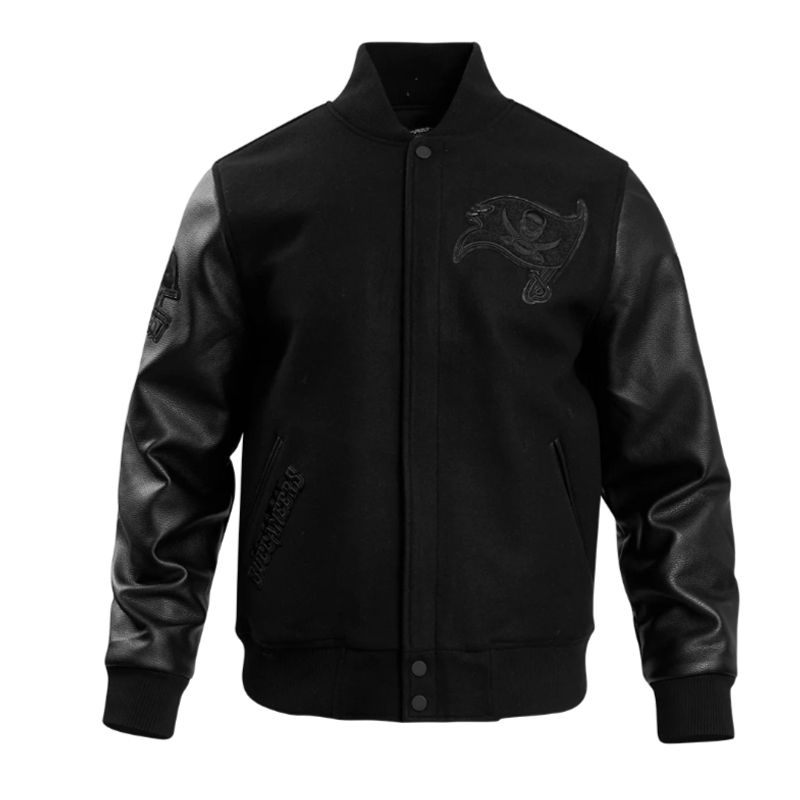 Tampa Bay Buccaneers Triple Black Varsity Wool/Leather Jacket