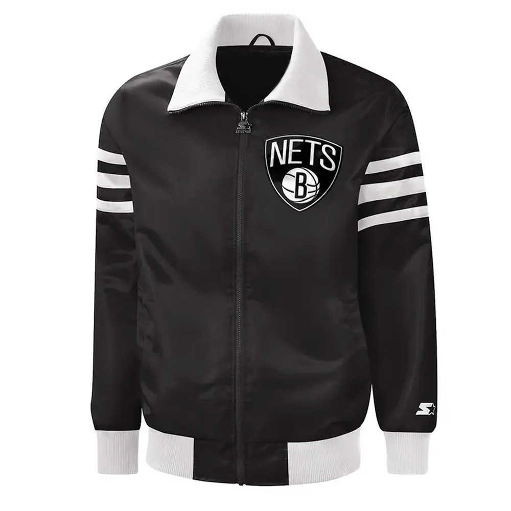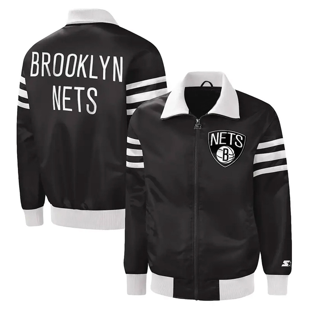 The Captain II Brooklyn Nets Varsity Black Satin Jacket