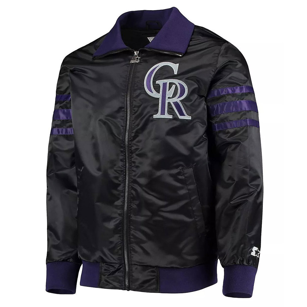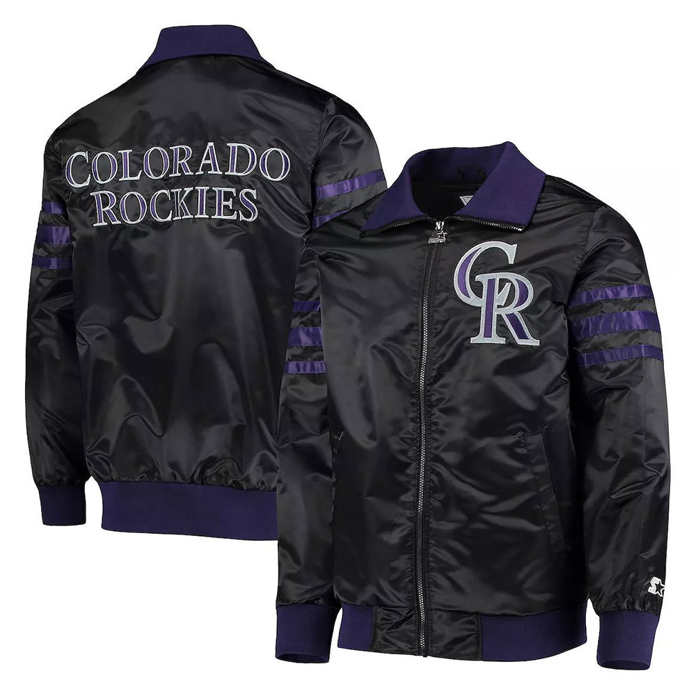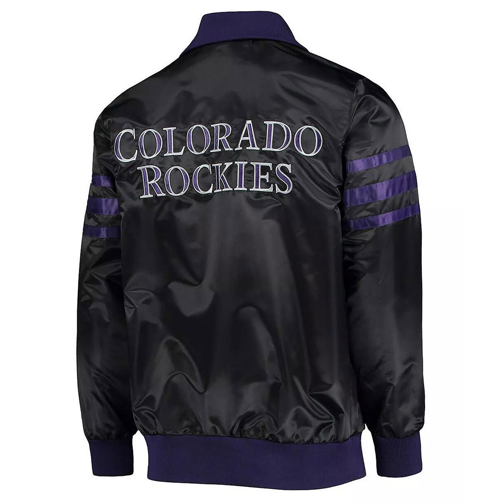 The Captain II Colorado Rockies Black Satin Varsity Jacket