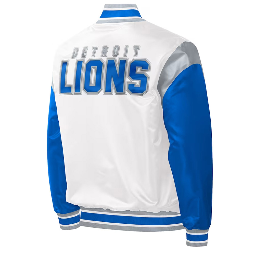 Throwback Warm Up Pitch Detroit Lions Varsity Satin Jacket