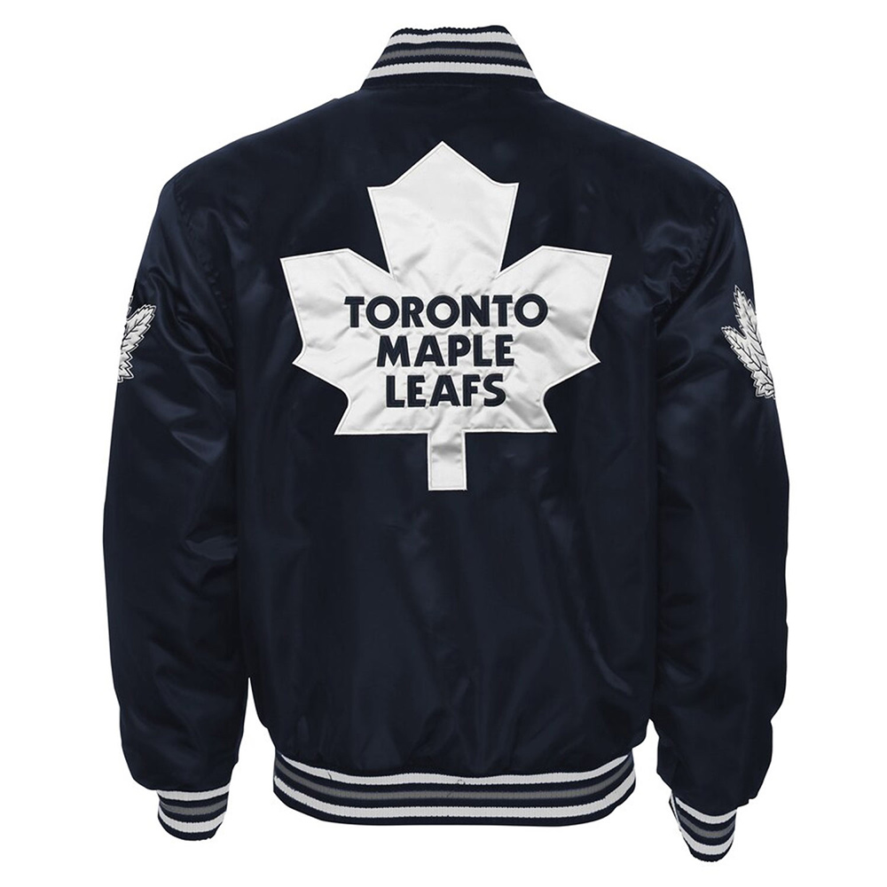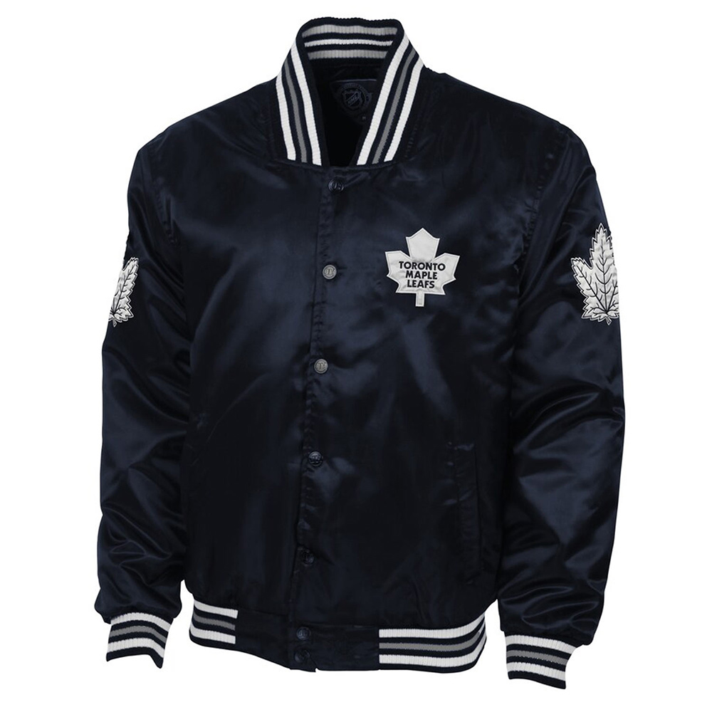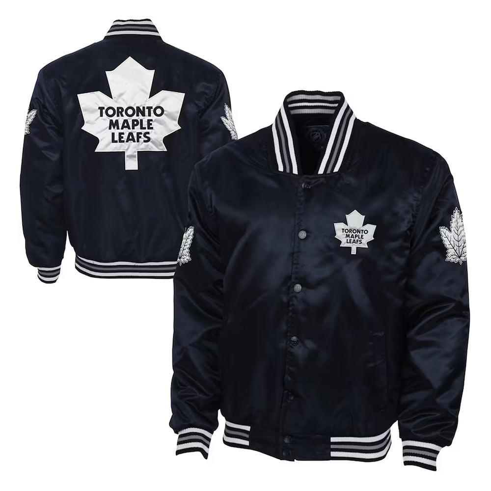 Toronto Maple Leafs Navy Blue Button-Up Satin Jacket