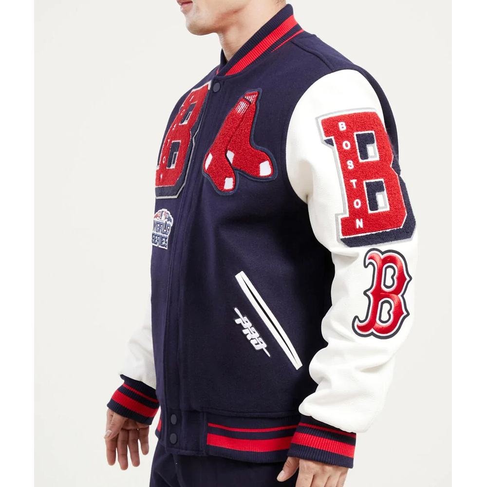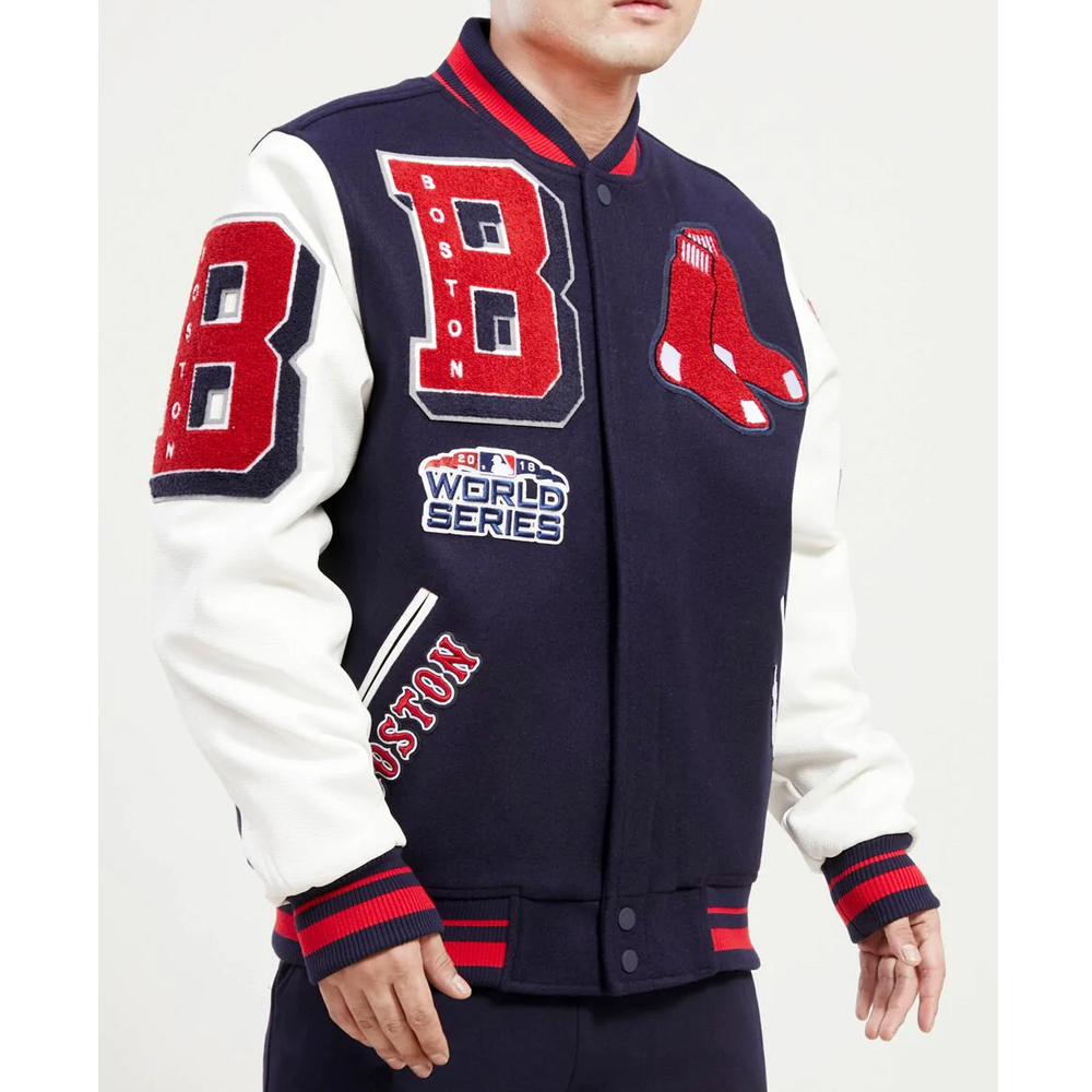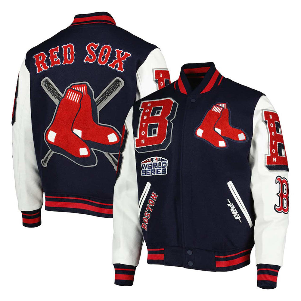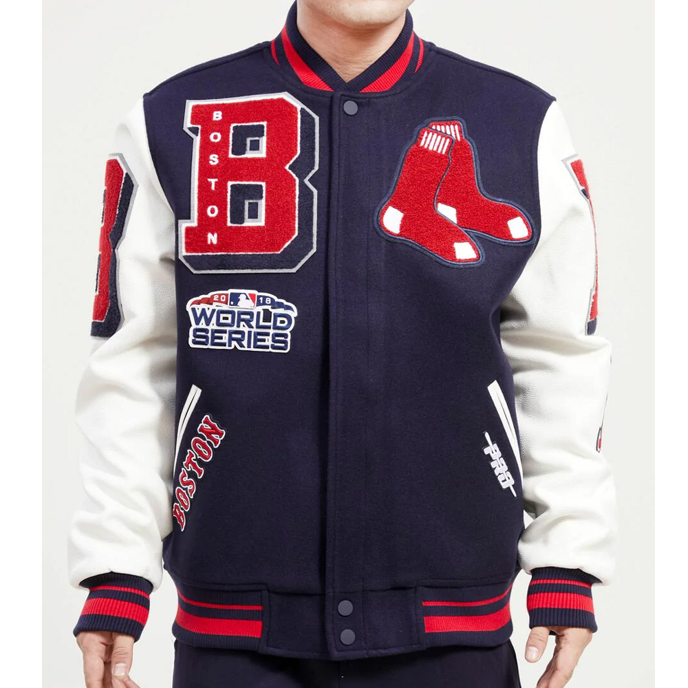 Varsity Boston Red Sox Mash Up Navy Blue and White Jacket