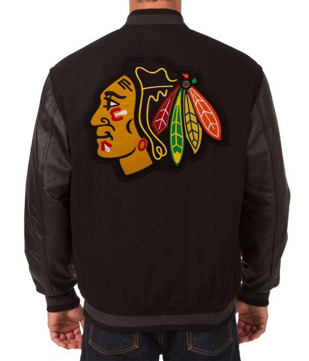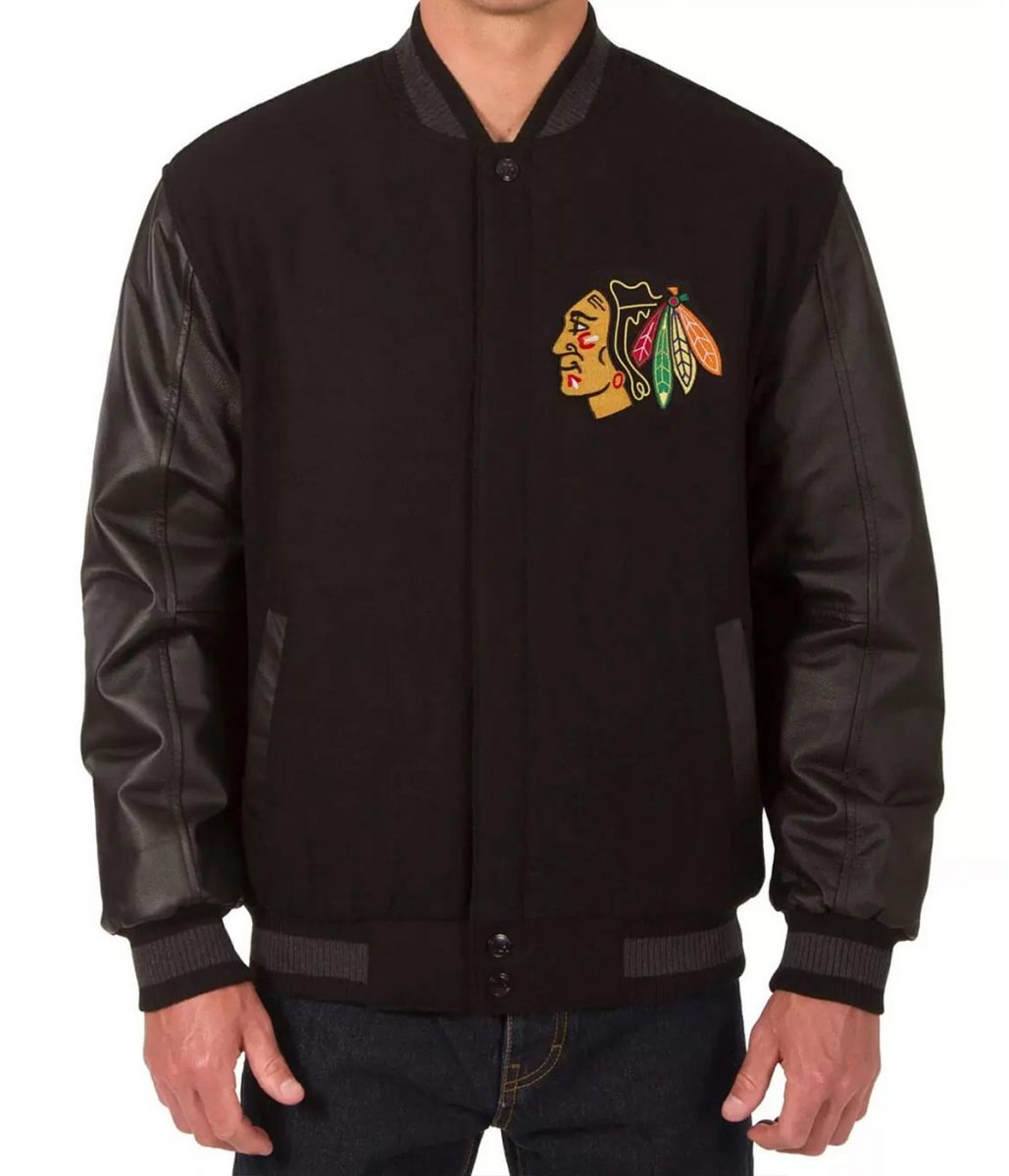 Varsity Chicago Blackhawks Black Wool/Leather Jacket