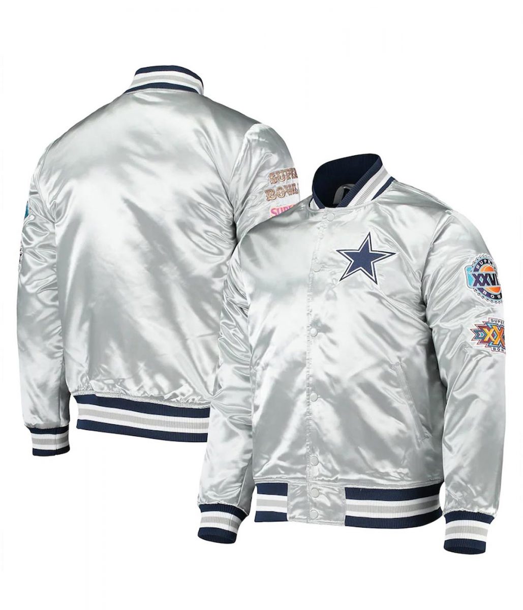 Varsity Dallas Cowboys Silver Satin Jacket