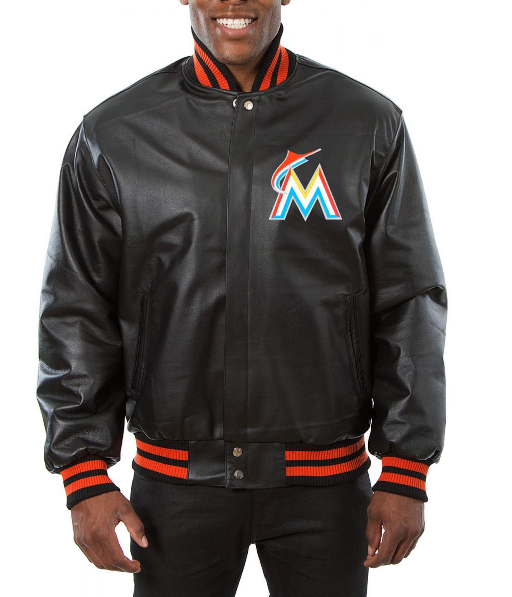 Varsity Miami Marlins Black Leather Jacket