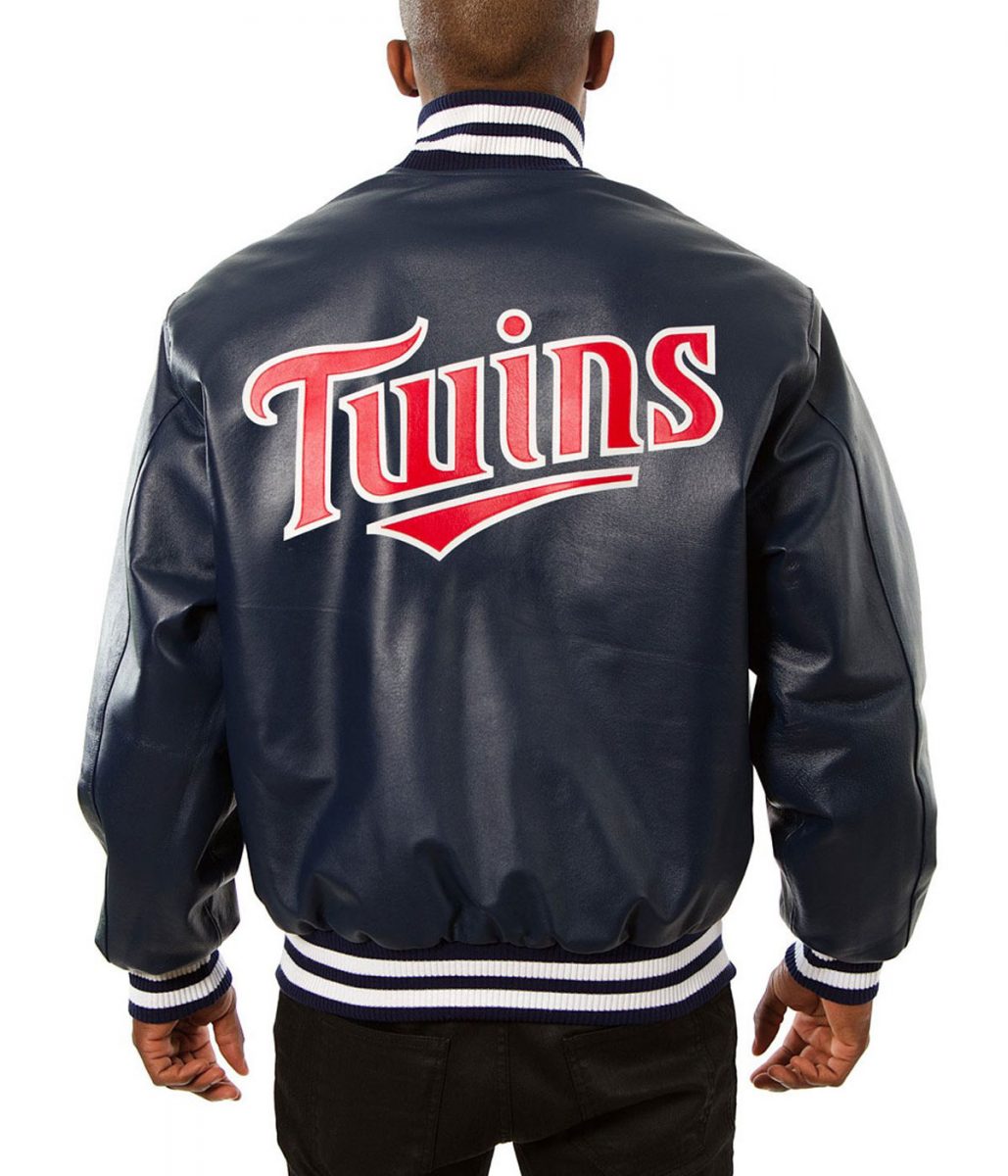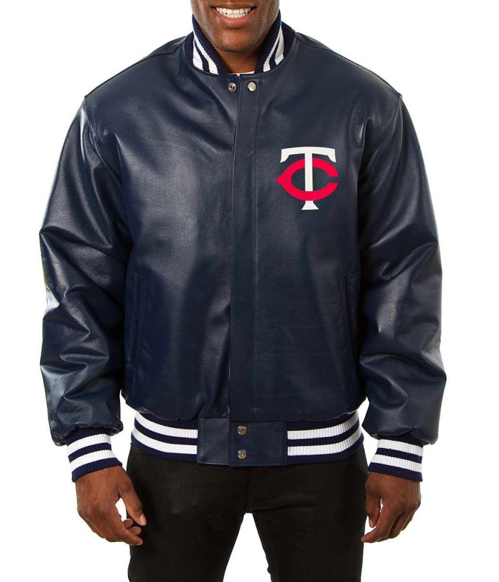 Varsity Minnesota Twins Navy Blue Leather Jacket