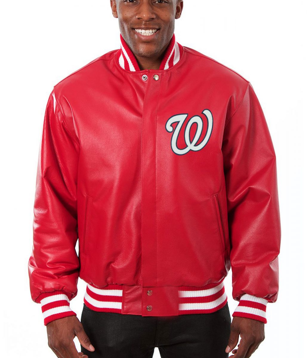 Washington Nationals Letterman Red Leather Jacket