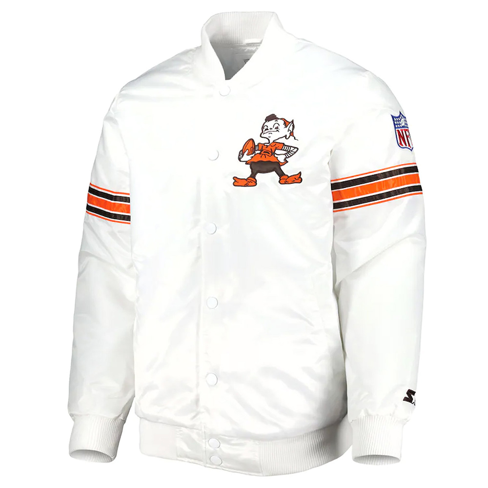 White Cleveland Browns The Power Forward Satin Jacket