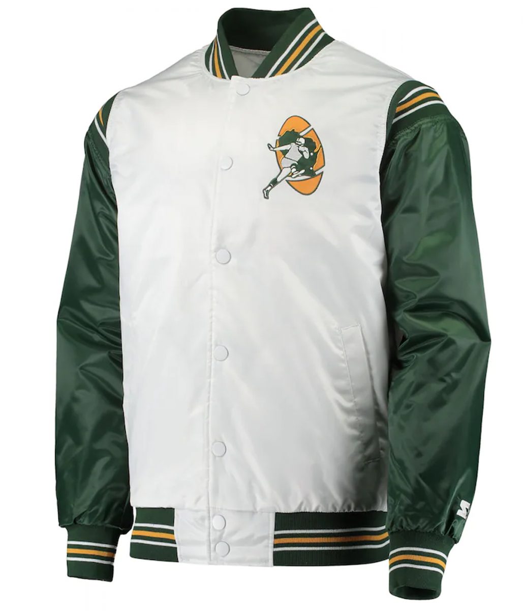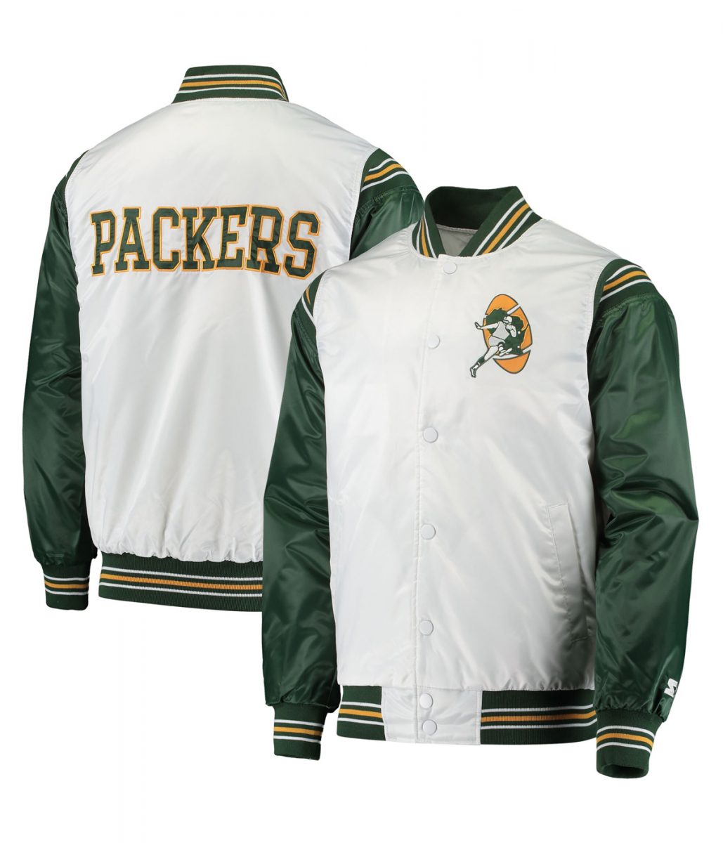 White/Green Green Bay Packers Historic Renegade Satin Jacket