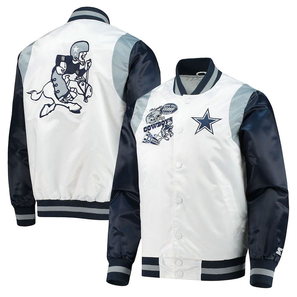 White/Navy Retro The All-american Dallas Cowboys Satin Jacket
