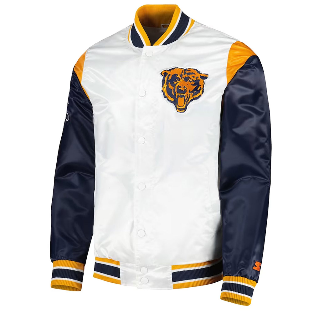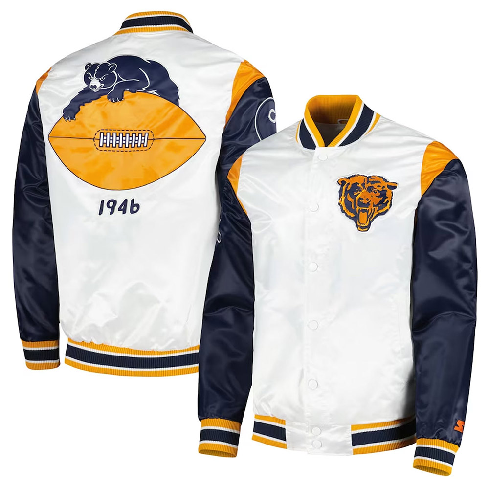 White/Navy Throwback Warm Up Pitch Chicago Bears Satin Jacket