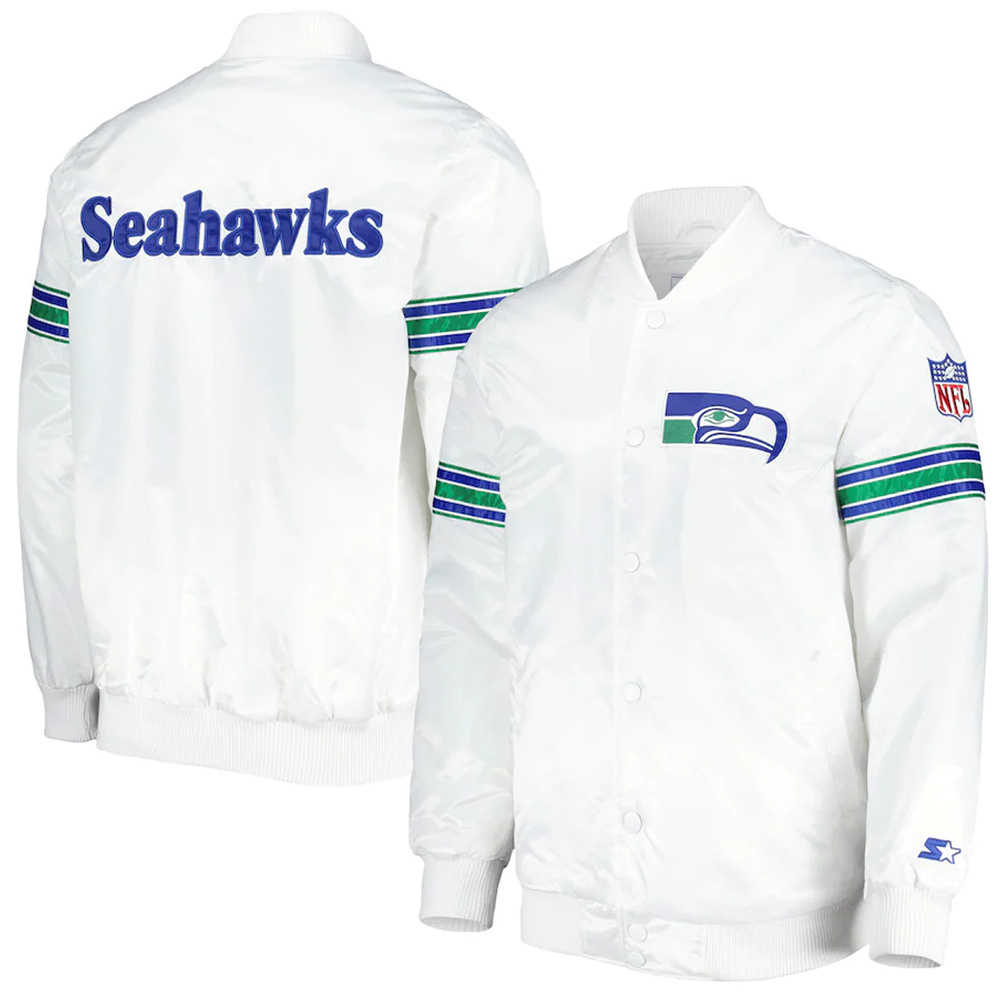 White Seattle Seahawks The Power Forward Satin Jacket