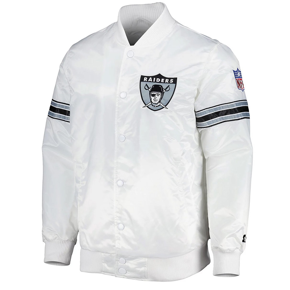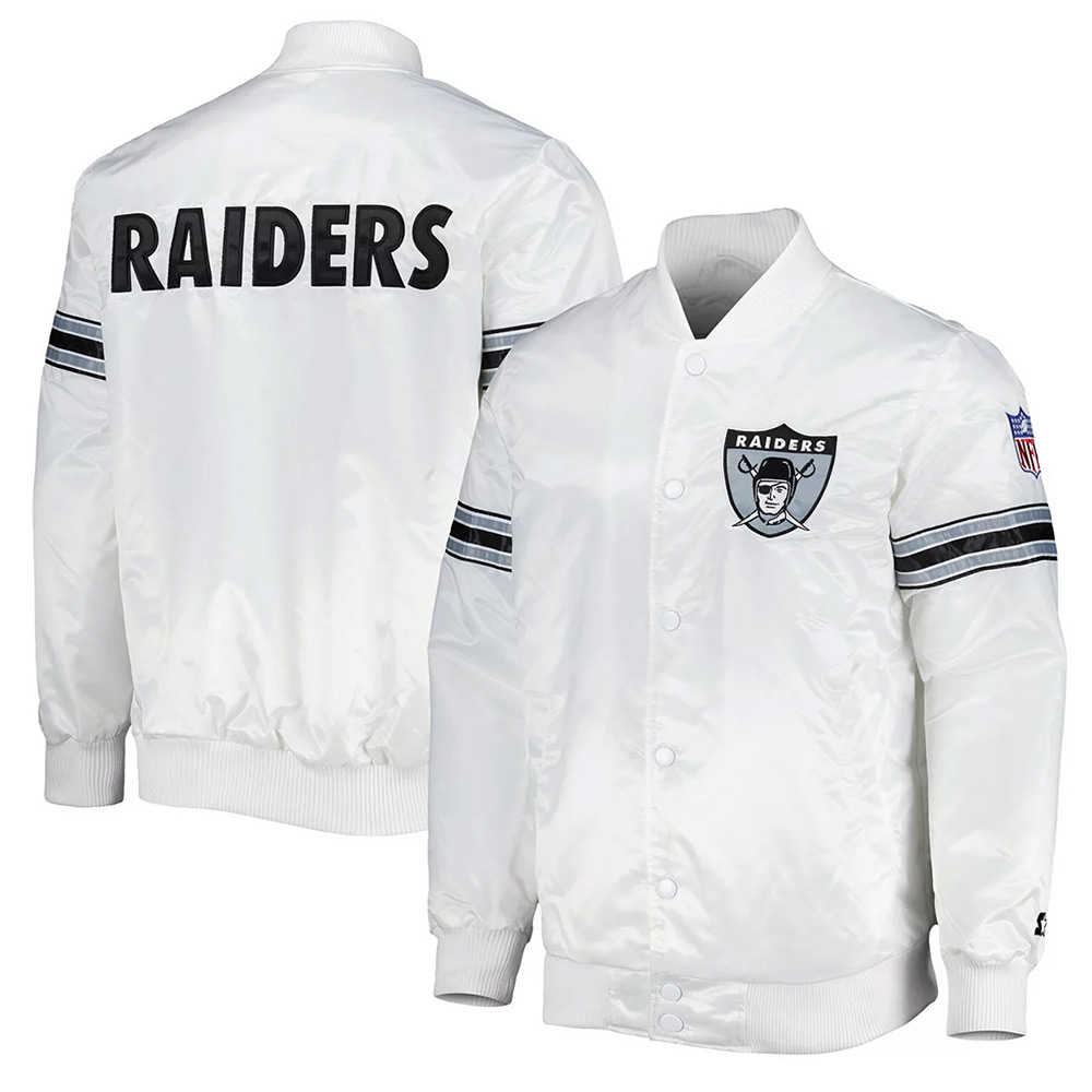 White The Power Forward Las Vegas Raiders Satin Full-Snap Jacket